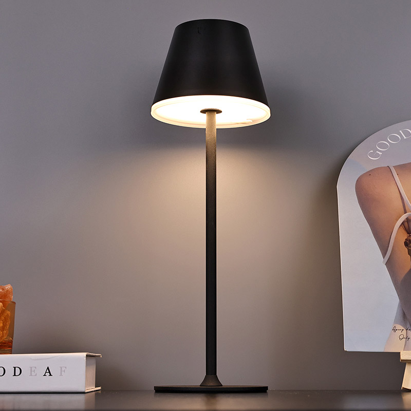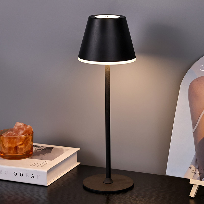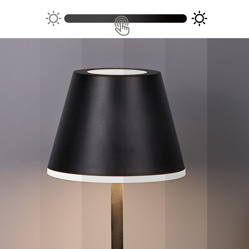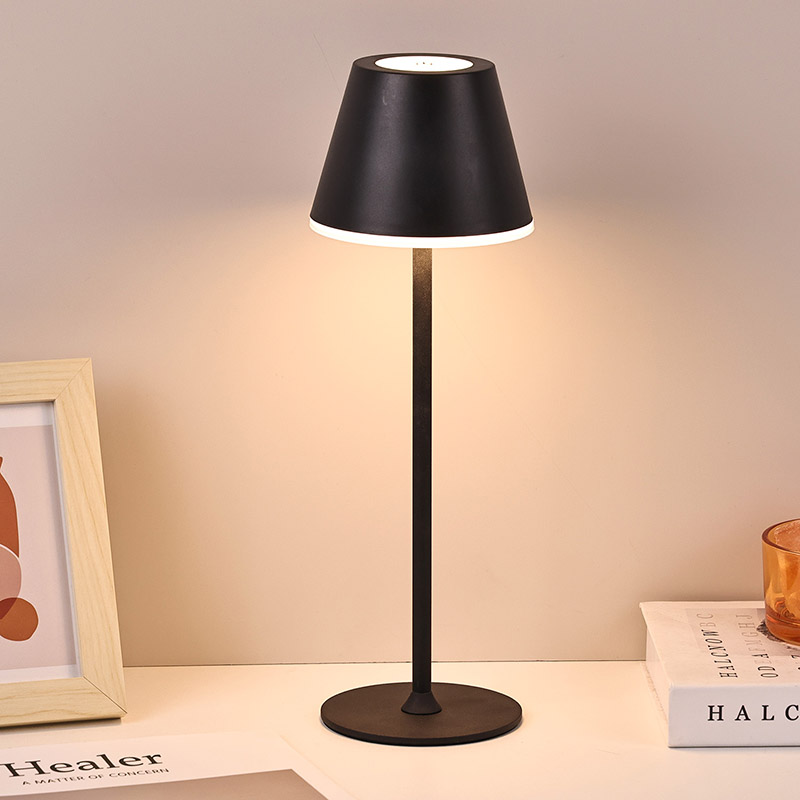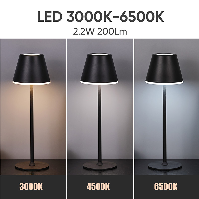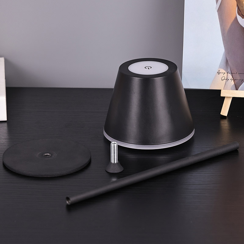 Монтажата безжична LED светилка за маса е копче на допир на горниот дел од центарот за сенка. Може да го контролира прекинувачот на светлата и конверзијата на три светли бои, исто како на сликата