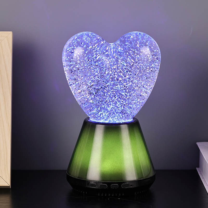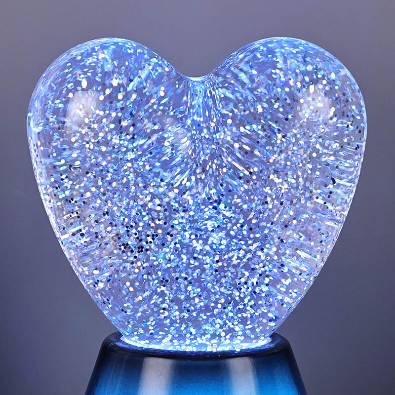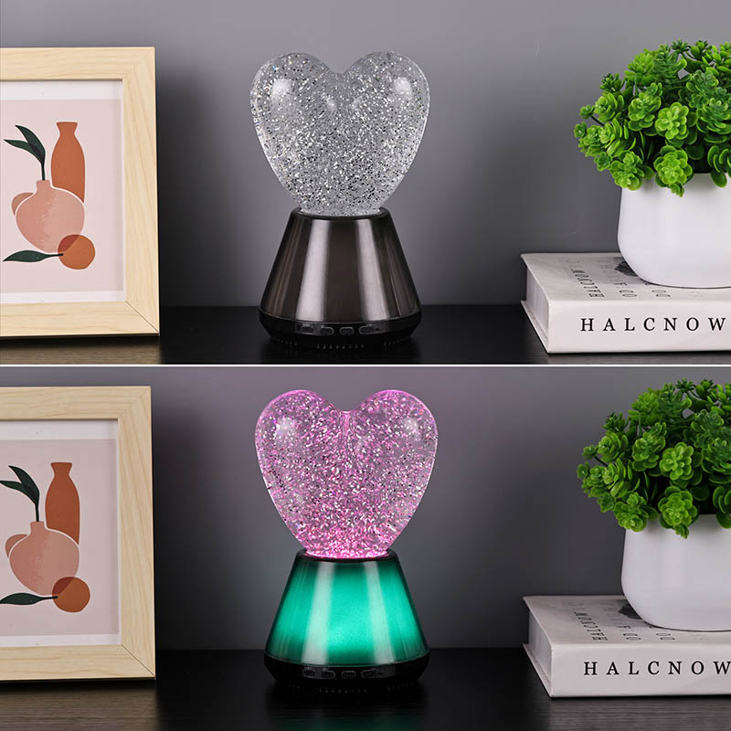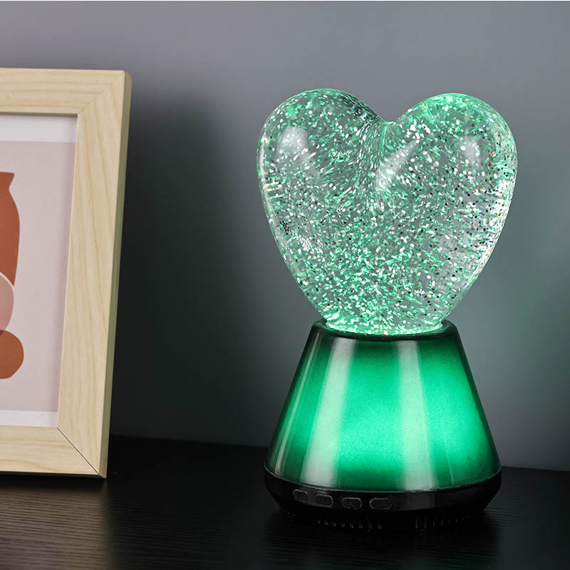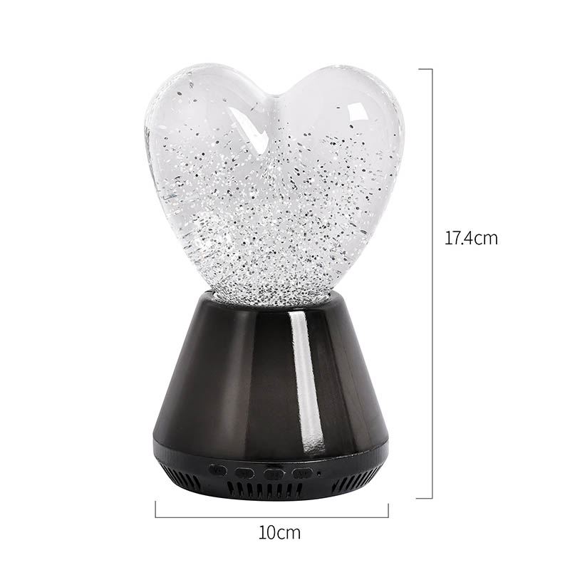 Внатрешноста на ноќното светло со срцеви лед со контрола на Bluetooth е исполнета со мистериозна течност, во која лебдат безброј светки светки. Кога светилката е вклучена, течноста полека ќе тече во стаклената топка во форма на срце, создавајќи ефект како од соништата. Овие светки изгледаат како расфрлани ѕвезди, нежно лебдат во течноста, давајќи им на луѓето чувство дека се на ѕвезденото небо. Без разлика дали е ден или ноќ, со сенка на срцето може да им донесе изненадување и радост на децата, овозможувајќи им да ја ослободат својата имагинација во сонливото осветлување.