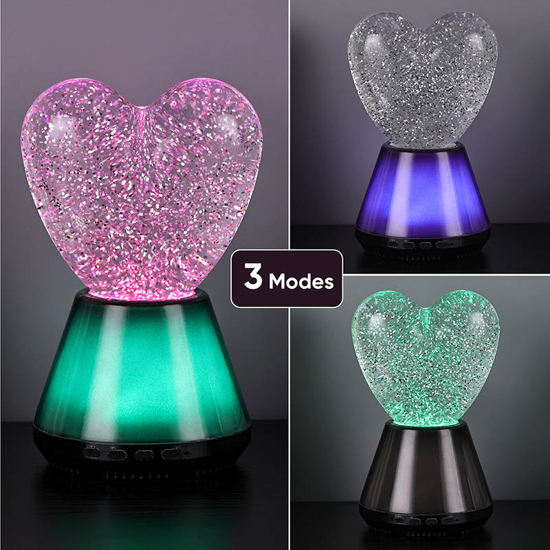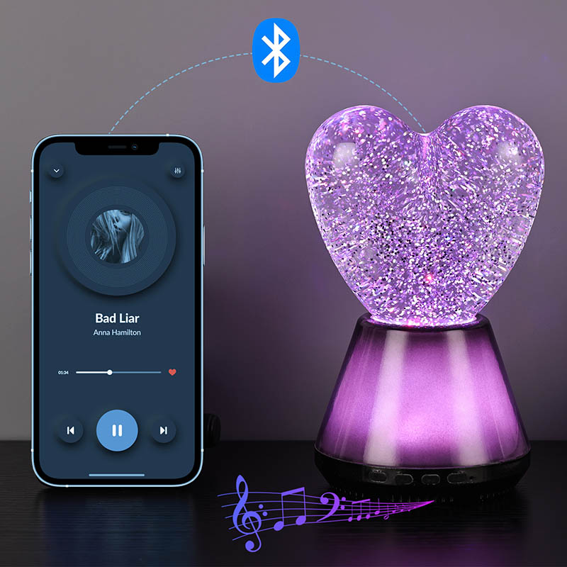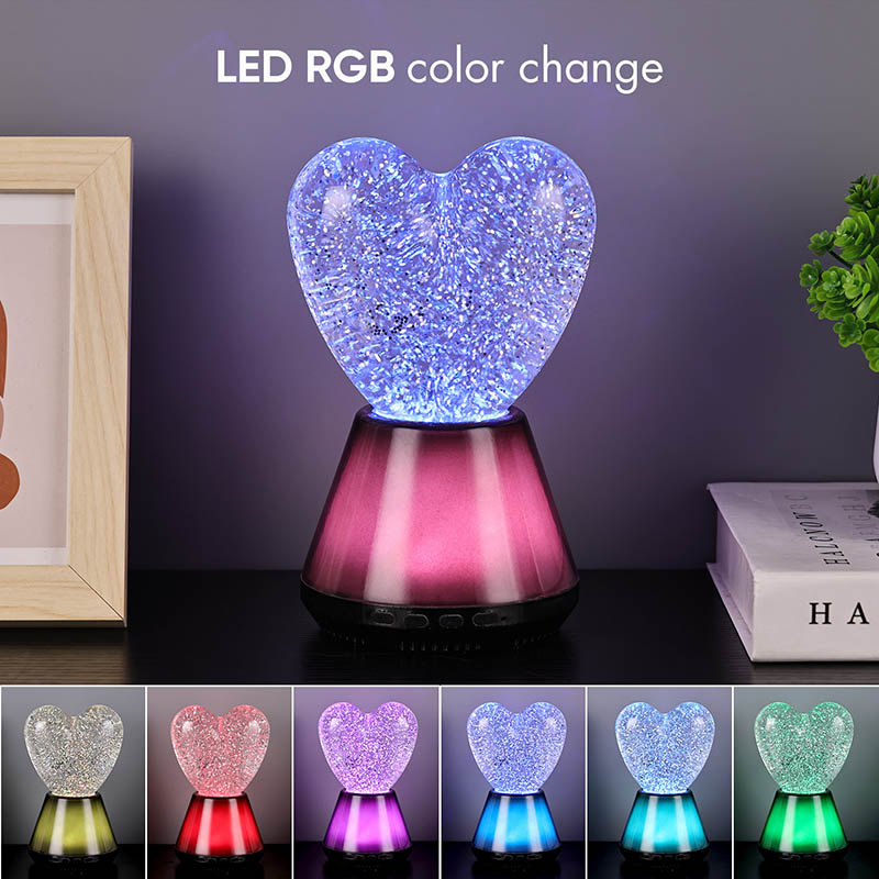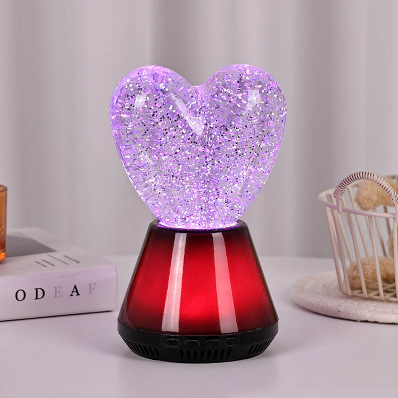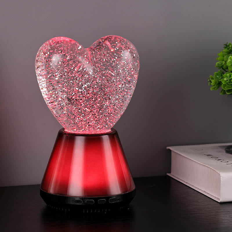 Внатрешноста на ноќното светло со срцеви лед со контрола на Bluetooth е исполнета со мистериозна течност, во која лебдат безброј светки светки. Кога светилката е вклучена, течноста полека ќе тече во стаклената топка во форма на срце, создавајќи ефект како од соништата. Овие светки изгледаат како расфрлани ѕвезди, нежно лебдат во течноста, давајќи им на луѓето чувство дека се на ѕвезденото небо. Без разлика дали е ден или ноќ, со сенка на срцето може да им донесе изненадување и радост на децата, овозможувајќи им да ја ослободат својата имагинација во сонливото осветлување.