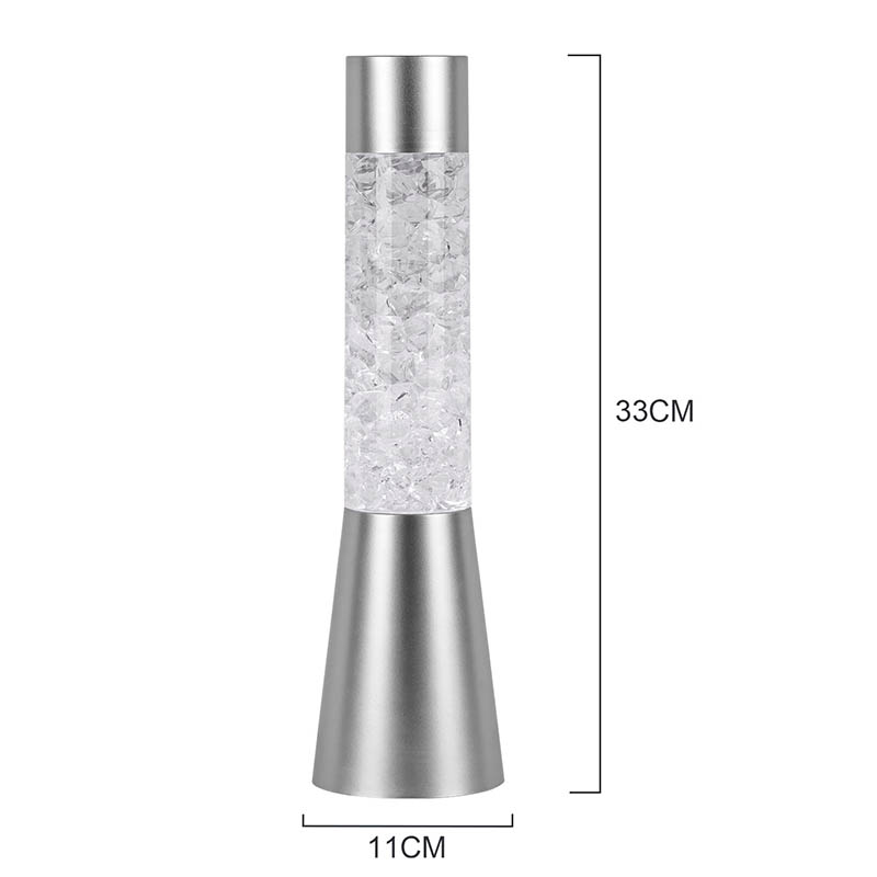 Течно блескаво ноќно светло со облик на мраз што ја менува бојата, има вградени LED светла што може да се префрлаат помеѓу три различни бои - црвена, сина и зелена. Едноставно завртете ја основата на светилката за да се движите низ боите додека не ја пронајдете саканата нијанса.