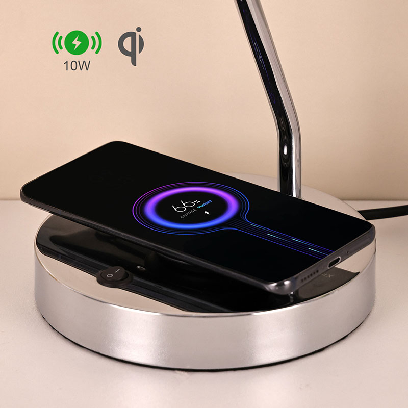 Светилката за работна маса има безжичен полнач во основата