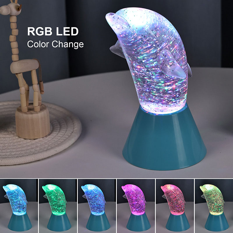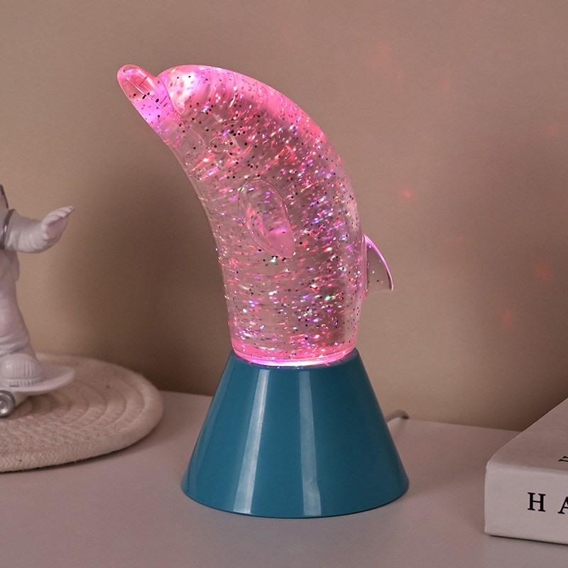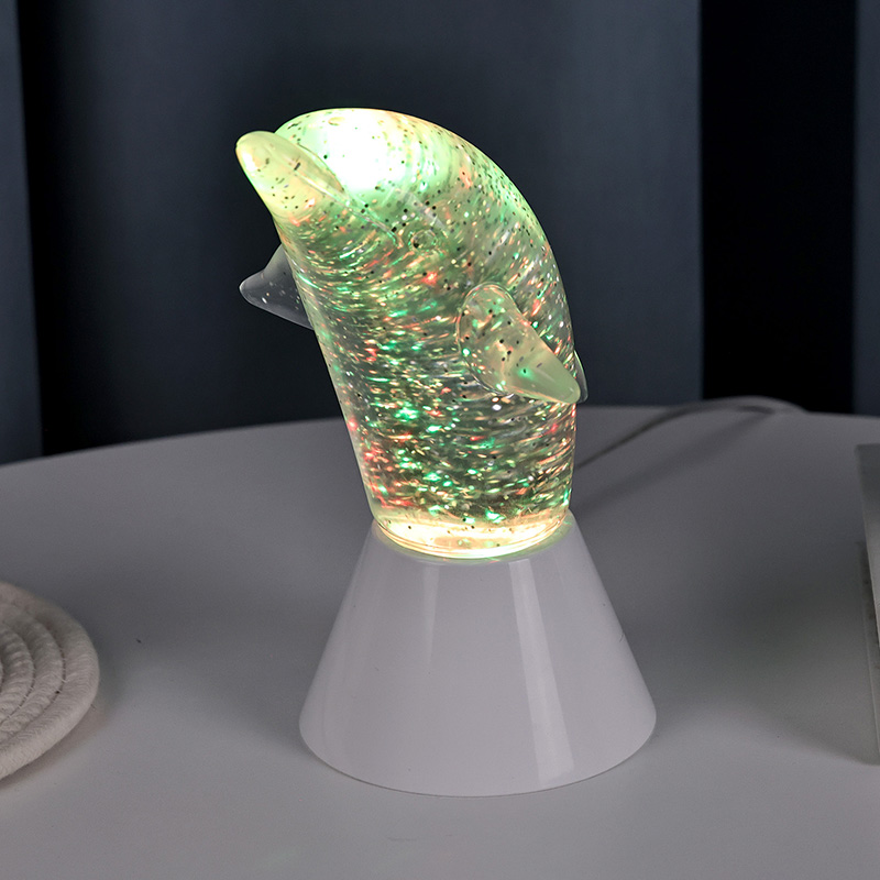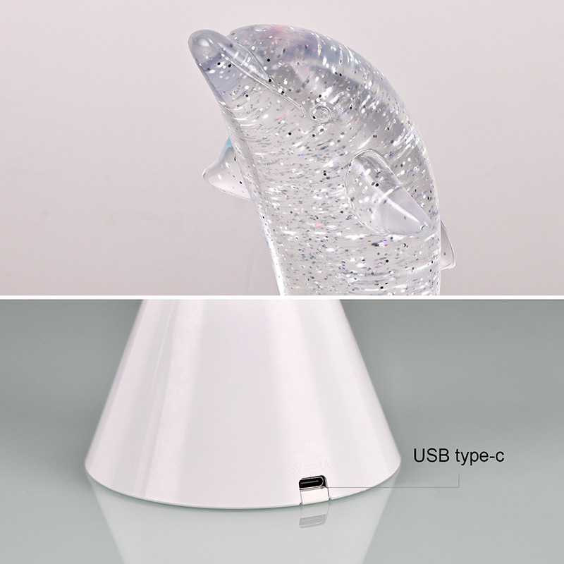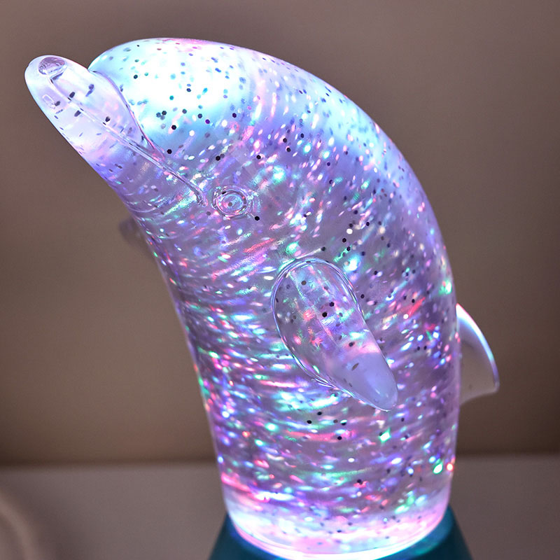 Делфин за деца Glitter RGB Ngh Light е дизајниран во форма на симпатичен делфин, со мазни линии и извонредни детали кои совршено го враќаат агилното држење на делфините. Внатре во проѕирната делфинска школка, во форма на светки Неправилните движења можат убаво да ги рефлектираат боите, создавајќи мирна и мистериозна атмосфера. Секој пат кога ќе ја погледнете оваа светилка, се чувствувате како да сте во длабок океан Меѓу нив, почувствувајте го бесконечниот шарм на природата Опремен со напредна технологија за осветлување на промена на бојата RGB, што ви овозможува слободно да се префрлате помеѓу повеќе бои. Без разлика дали е топло портокалово, романтично розево или мирно сино,