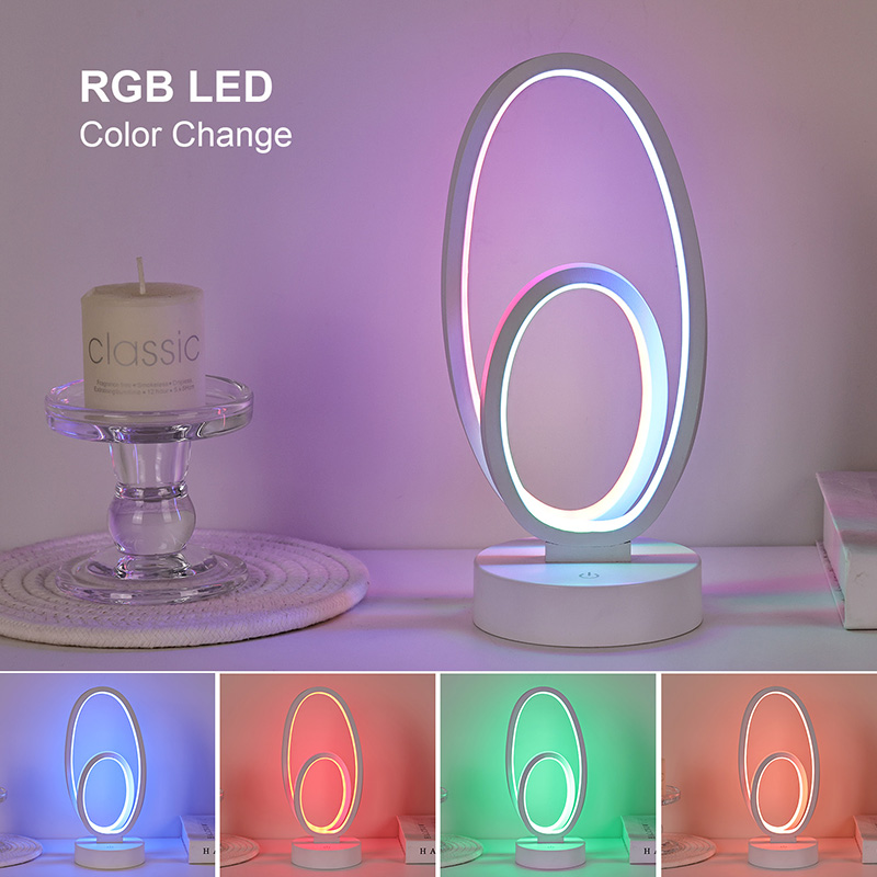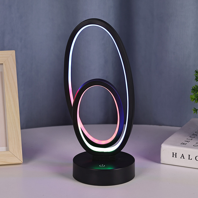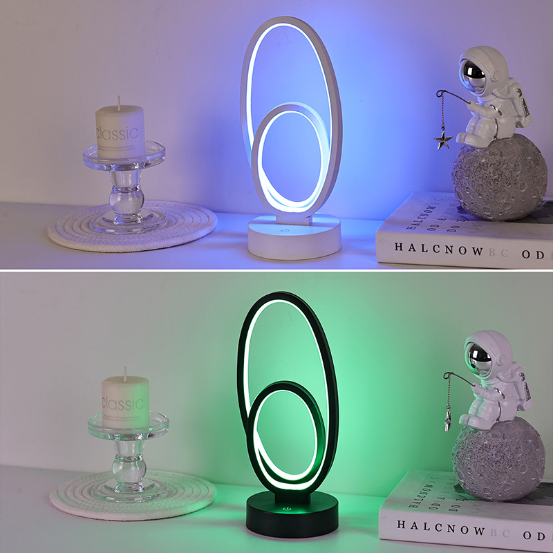 Двојна кружна прстенести сенка RGB работна светилка е уметнички акцент за домашните простори, со безбедно напојување со низок напон DC за стабилни и енергетски ефикасни перформанси, што обезбедува безбедно користење. Погоден за различни сценарија како што се дневни соби, детски соби, области за учење и спални соби