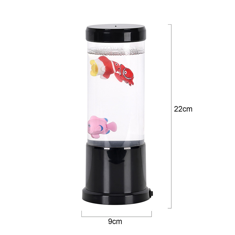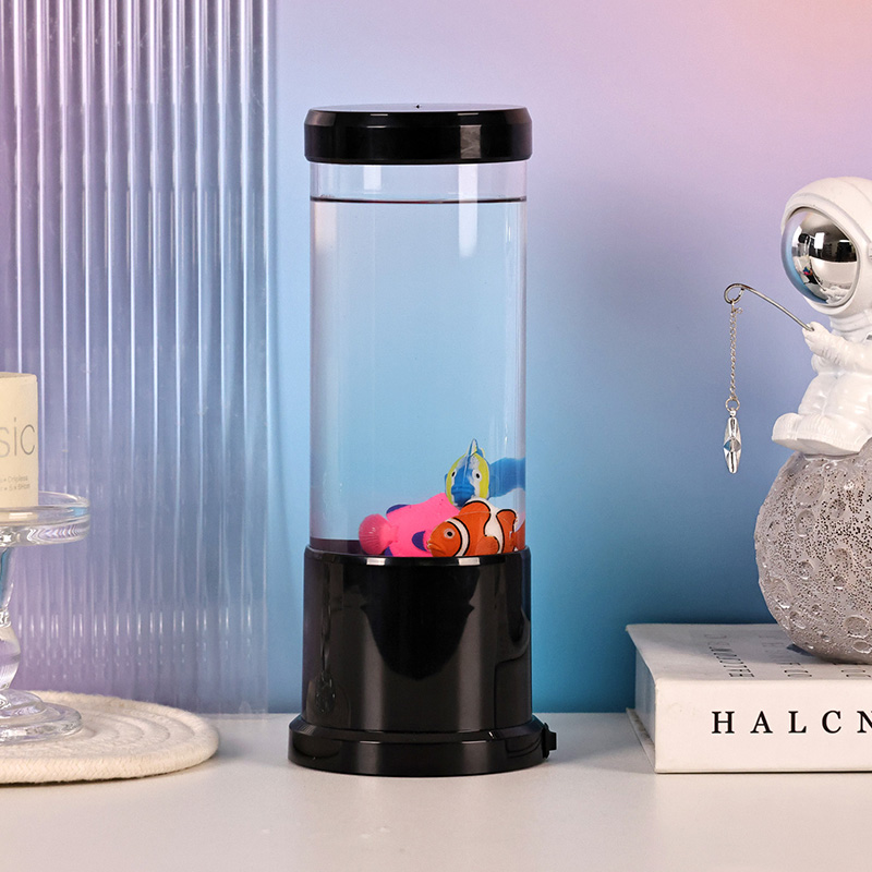 Ви ја претставуваме хипнотизирачката LED светилка за риби - неверојатен спој на модерен дизајн и воден шарм што ја носи магијата на подводниот свет во вашиот дом. Со својата елегантна црна надворешност, елегантна цилиндрична форма и волшебно внатрешно движење, оваа декоративна светилка е повеќе од само осветлување -