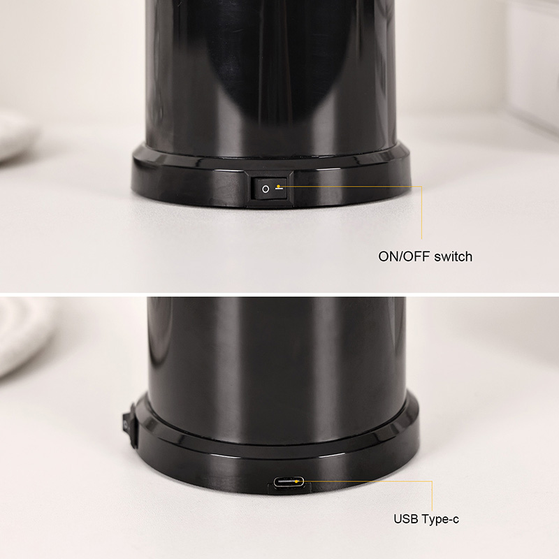 Изработена со сјајна црна основа и капак, светилката се одликува со минималистичка, но софистицирана естетика која го надополнува секој внатрешен декор. Без разлика дали е поставена на ноќна маса, биро, полица или акцент на дневната соба, неговата префинета силуета додава допир на елеганција притоа привлекувајќи внимание на волшебната сцена внатре. Едноставниот прекинувач со копчиња на страната овозможува лесно ракување - само притиснете за да го вклучите или исклучите светлото или лесно да се движите низ шарените режими.
