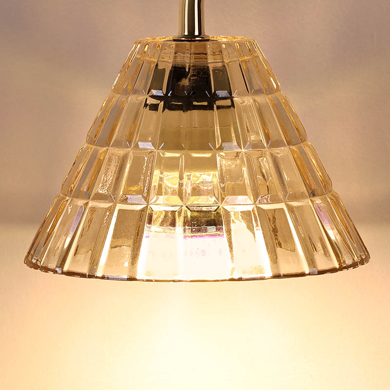 Абажурот е изработен од проѕирно стакло (акрилик), а топлото обоено светло е многу погодно за читање. Најголемата продажна точка на столната светилка со стаклена сенка со прилагодување на висината, покрај дизајнот, е столбот на светилката што се прилагодува по висина со ротирачко копче, а опсегот на осветлување може да се прилагоди и според висината.