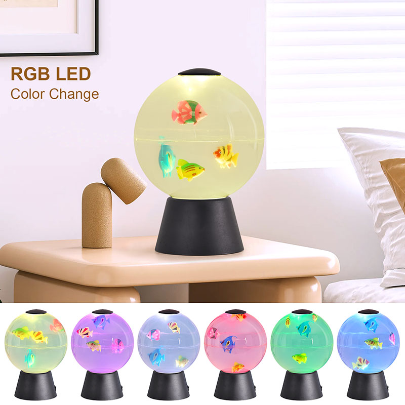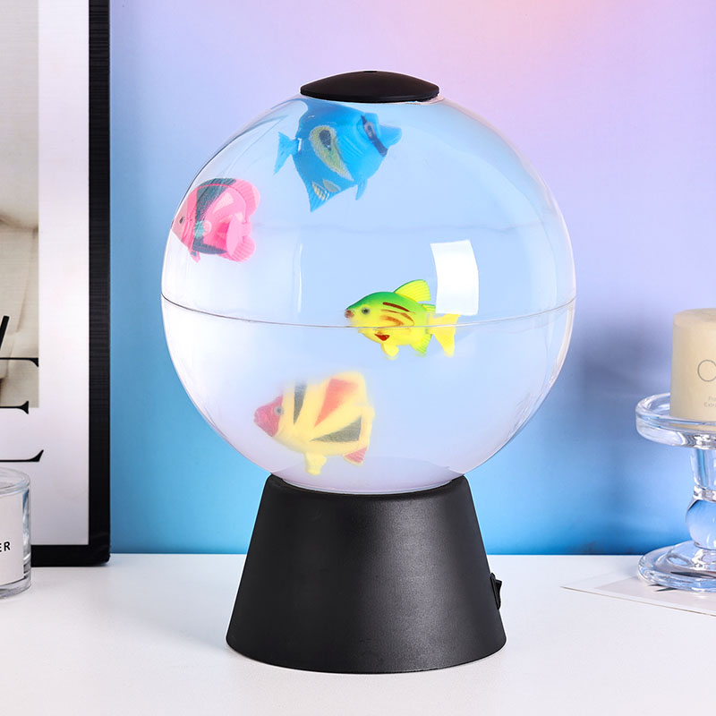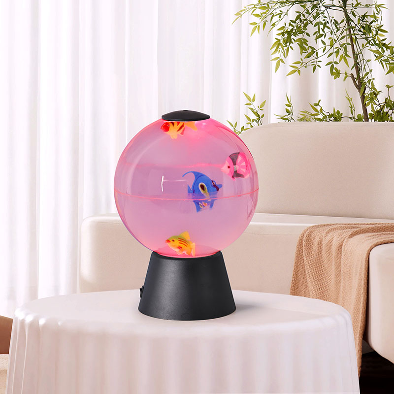 Дизајниран како разновиден украсен предмет, овој анимиран рибен глобус служи за повеќе намени: смирувачки