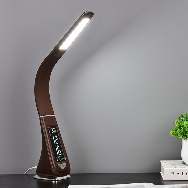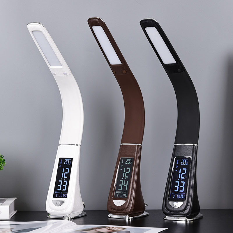 Иновативна кожна ламба: Елеганцијата ја исполнува функционалноста со прилагодливо осветлување од 3 нивоа, LED дисплеј за аларм и порта за полнење USB