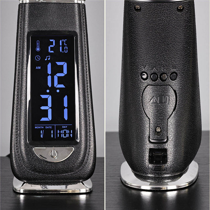LED -ламбата со LED со LED светилки на пердуви обезбедуваат енергетска ефикасност и долговечност. За разлика од традиционалните светилки со блескаво светло, LED светилките трошат помалку моќност и произведуваат помалку топлина, со што оваа ламба и е-пријателска и економична. Подложен за алармниот часовник за аларм, бидејќи кожната ламба не запира на импресивни карактеристики на осветлување. Исто така, тој е опремена со LED дисплеј за алармни часовници што е стилски и практично. Дигиталниот дисплеј е јасен и лесен за читање, дури и во услови на слабо осветлување. Тоа го покажува тековното време, датум, па дури и нивото на температурата и влажноста во затворен простор.