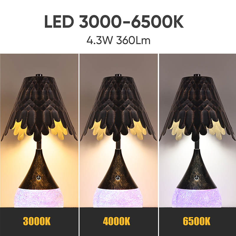 Топло светло LED ламба со шише RGB сјај нуди три основни режими на осветлување: ладна светлина, топла светлина и природна светлина. Секој режим може да се прилагоди преку лизгачот за затемнување чувствителен на допир лоциран на основата на ламбата или преку придружна апликација за мобилни телефони (по избор). Студената светлина е идеална за фокусирани задачи што бараат голема осветленост, како што се кодирање или проучување. Топлата светлина создава пријатна, поканувачка атмосфера, совршена за релаксирање или читање пред спиење. Природната светлина имитира светло на дневната светлина, намалувањето на напрегањето на очите и промовирајќи будност во текот на дневните часови.