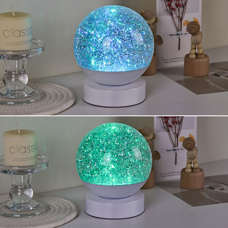 Уникатниот ефект „протечена светлина и сенка“ ја прави целата сфера да изгледа како планета што дише, со лебдечки и вртливи светла во течноста, кои наликуваат на бавниот тек на Млечниот Пат пред вашите очи. Без разлика дали тоа е нежен придружник за време на ноќниот сон или блескава декорација за празнични забави, секогаш може да биде фокусна точка. Дополнително, се одликува со тивко работење, што не обезбедува нарушување на сонот на децата, што го прави идеално смирувачко ноќно светло.