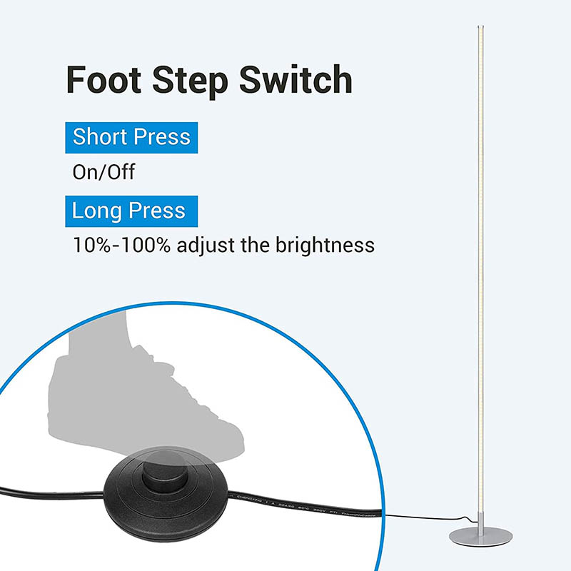 Дизајнирана имајќи ја предвид практичноста, нашата LED подна светилка има ножен прекинувач за лесно ракување. Едноставно стапнете на прекинувачот за да ја вклучите или исклучите светилката, со што ќе биде лесно да го контролирате осветлувањето без да барате копчиња или прекинувачи. Овој внимателен детал од дизајнот го подобрува целокупното корисничко искуство, осигурувајќи дека ракувањето со светилката е што е можно поедноставно и интуитивно.