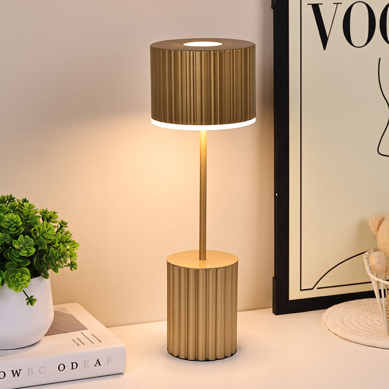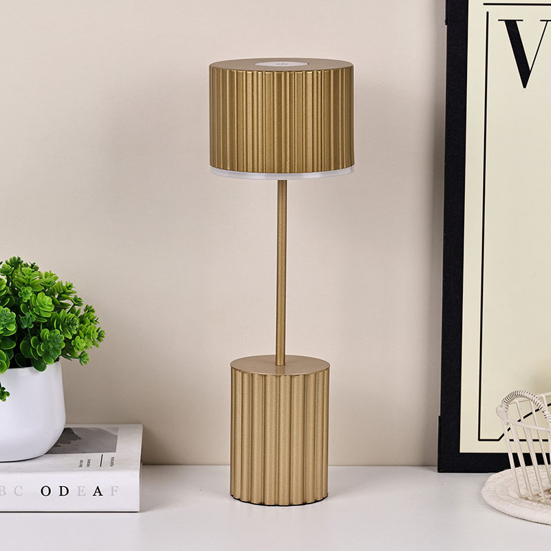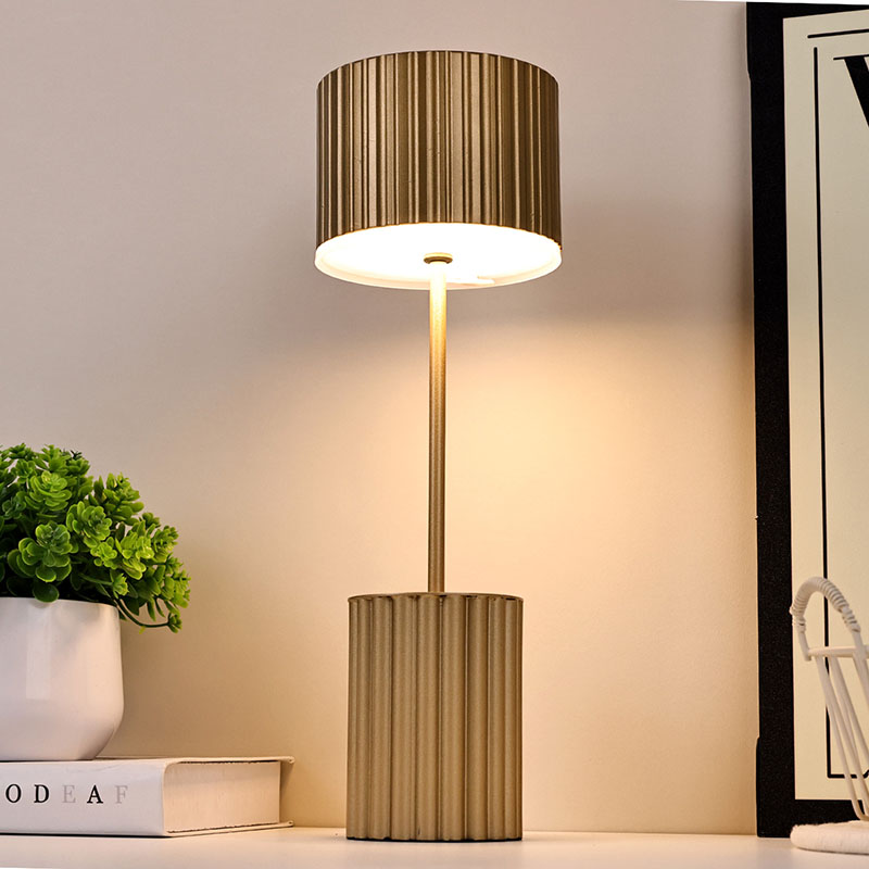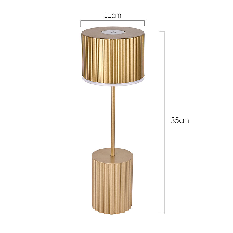 Мала столна ламба со метална сенка со батерија е изработена од висококвалитетен метален материјал, со површина која е фино полирана и обработена, давајќи мазна и нежна текстура и елегантен сјај. Без разлика дали се работи за златни, сребрени или други класични бои, тие можат совршено да се спојат со различни стилови на внатрешна декорација, создавајќи модерна и луксузна атмосфера