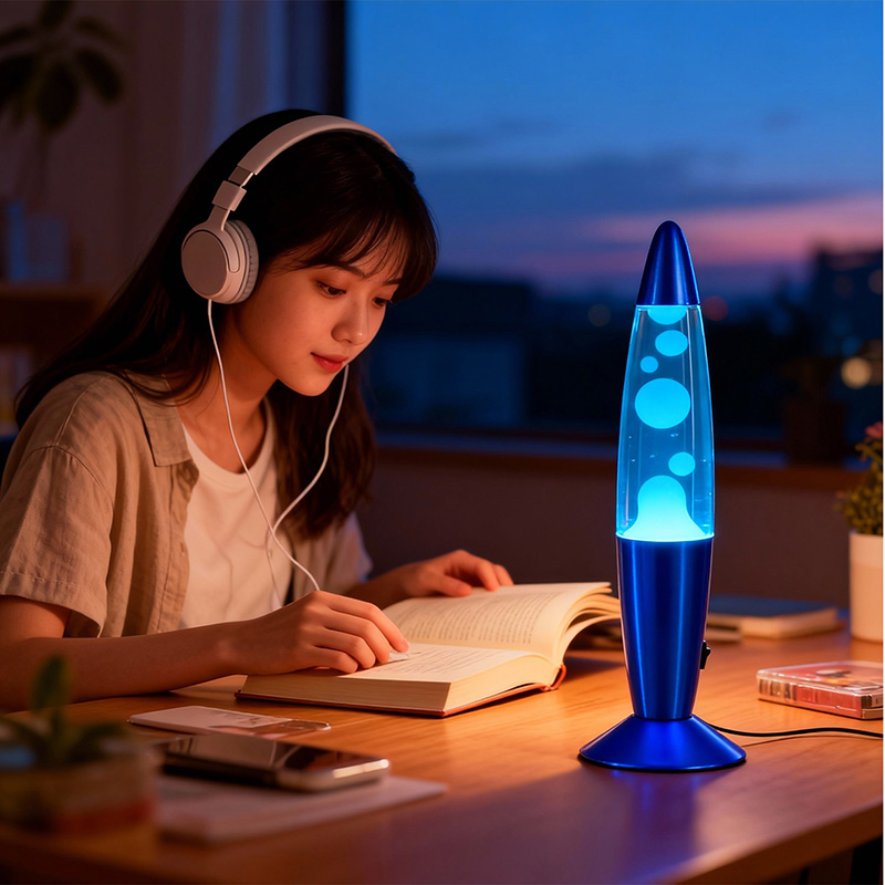 Нежниот проток на восокот, осветлен со топла внатрешна LED сијалица, создава мек, амбиентален сјај што ја подобрува релаксацијата и го намалува стресот. Без разлика дали се опуштате по напорен ден или барате инспирација за време на тивки моменти, ритмичкото движење на ламбата од лава обезбедува смирувачко визуелно искуство.