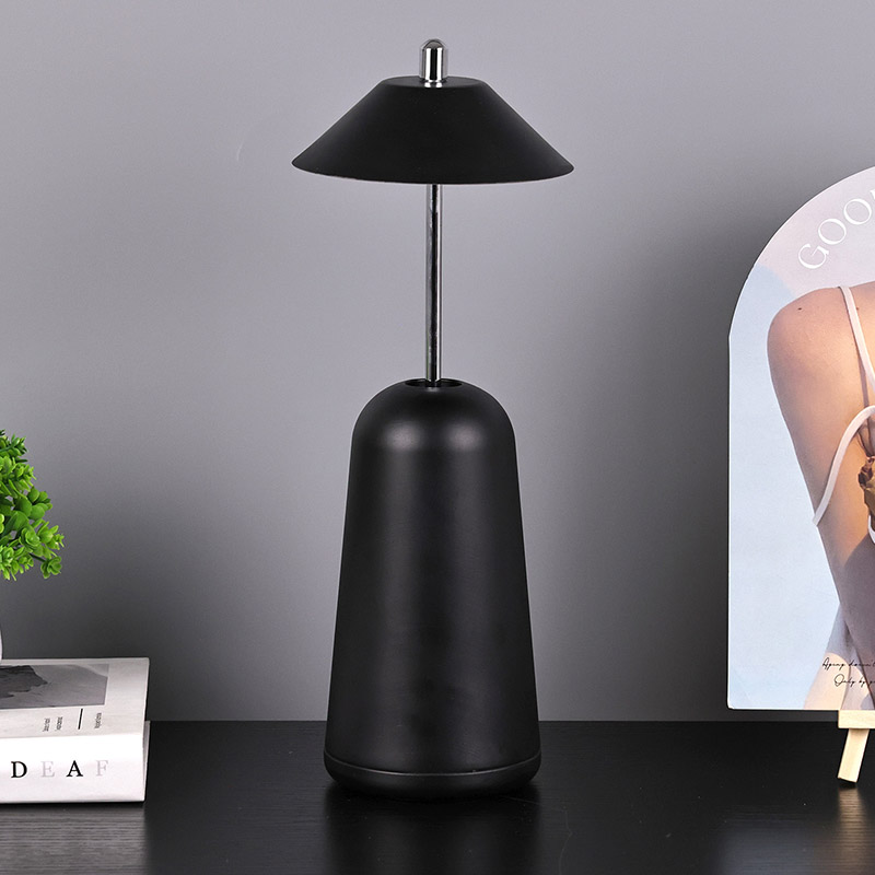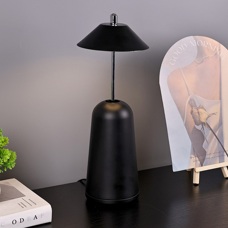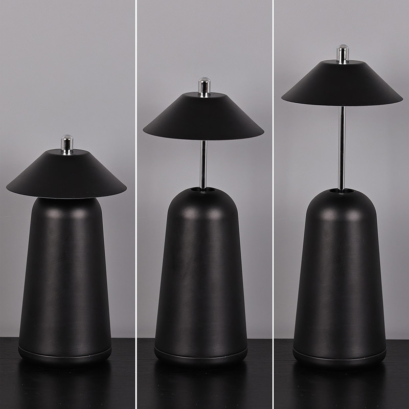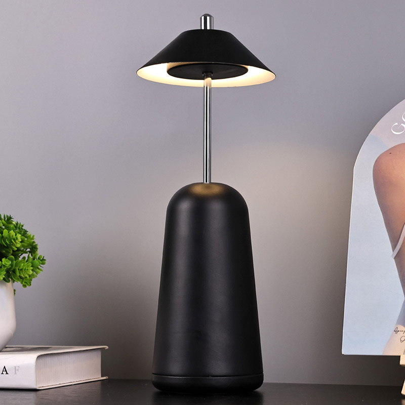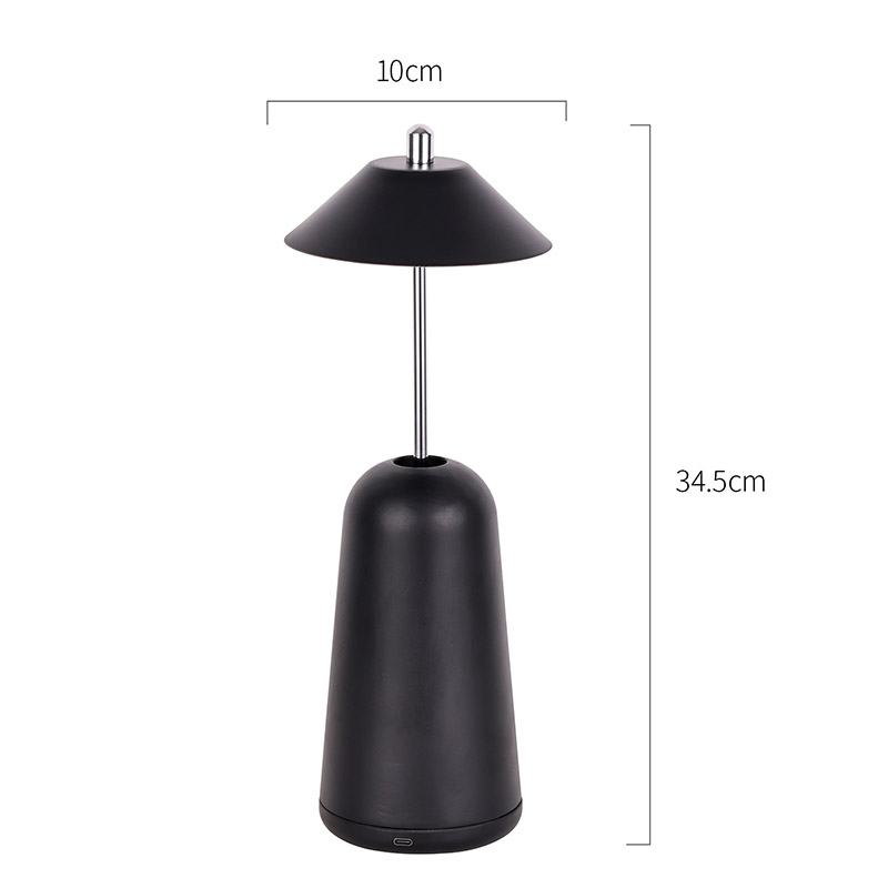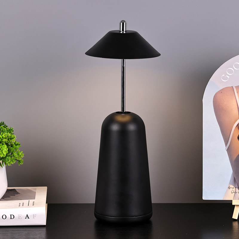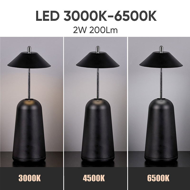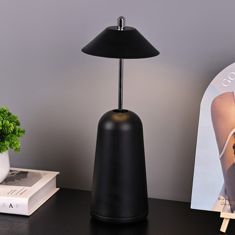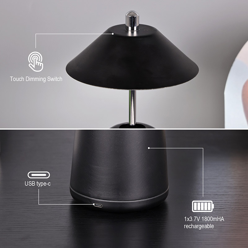 Светлината на модерната LED светилка за работна маса со прилагодување на висока нијанса е вдлабена внатре во абажурот, со топли бои и три нивоа на интензитет на светлина кои се движат од 3000K до 6500K. Врвот на абажурот е прекинувач на допир, сличен на антена. Основата е составена од неправилен цилиндричен метал