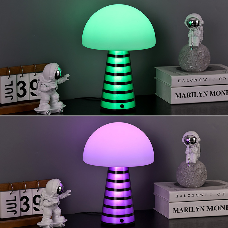 Главната карактеристика на столната ламба со неонски неонски бои Mushroom е што боите на осветлувањето се многу богати, а градиентното осветлување може да приспособи различни режими на прикажување на осветлувањето, вклучувајќи монохроматски, повеќебојни iridescent, скалести итн. Боите се богати и шарени, особено пријатни за децата