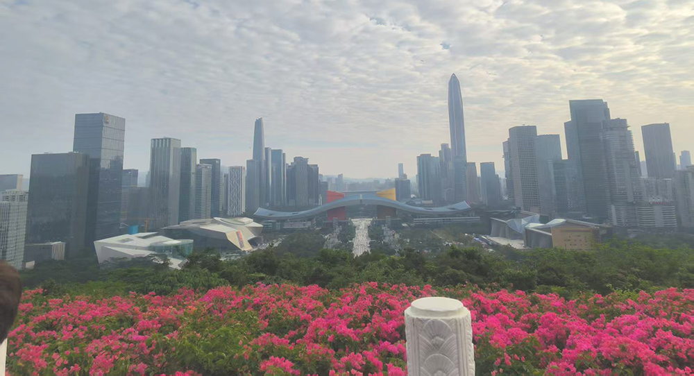 По 20 минути искачување, сите стигнаа до врвот! Стоејќи пред бронзената статуа на другарот Денг Ксијаопинг, со поглед на раздвижениот град Шенжен, исполнет сум со емоции.