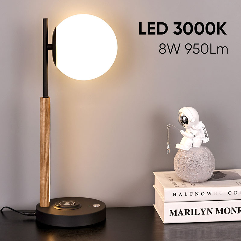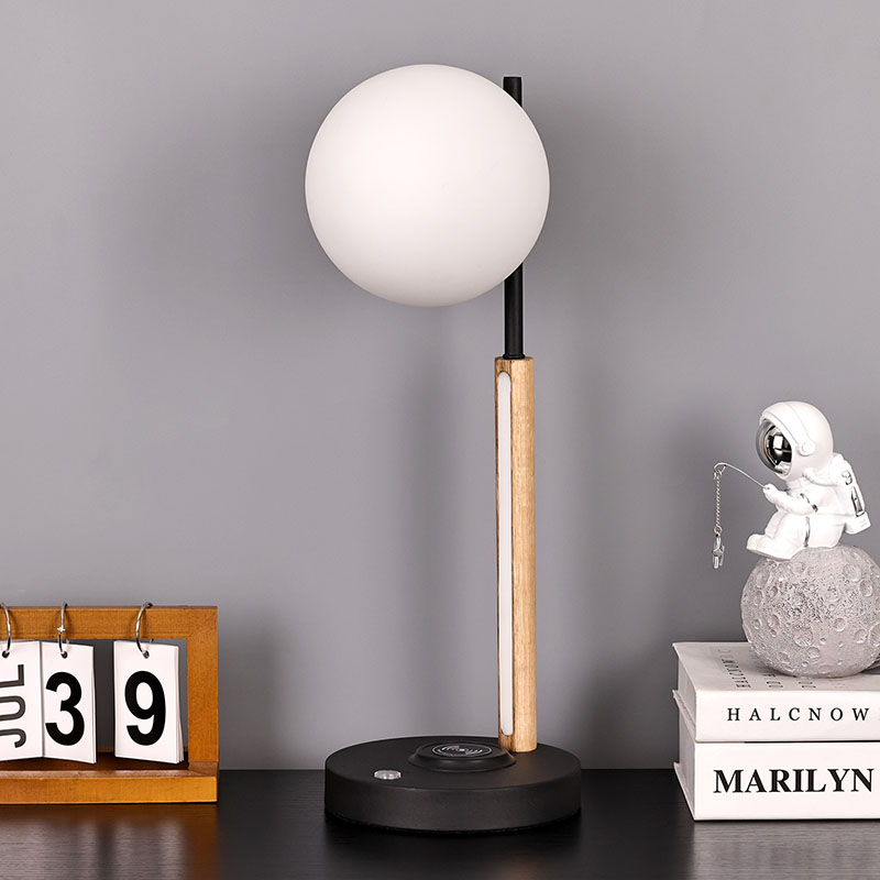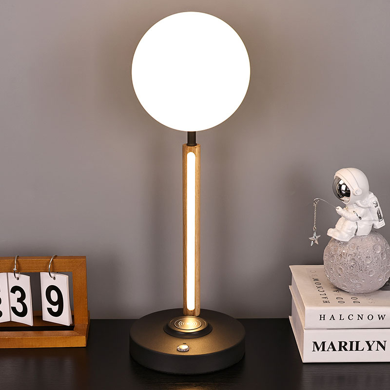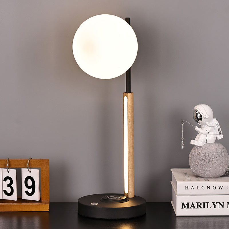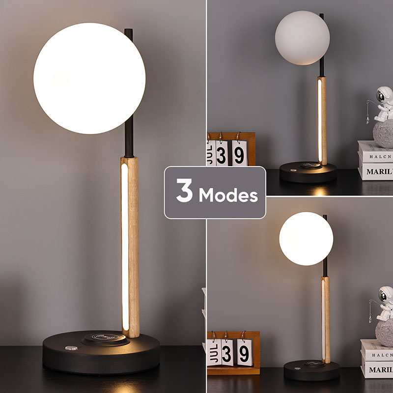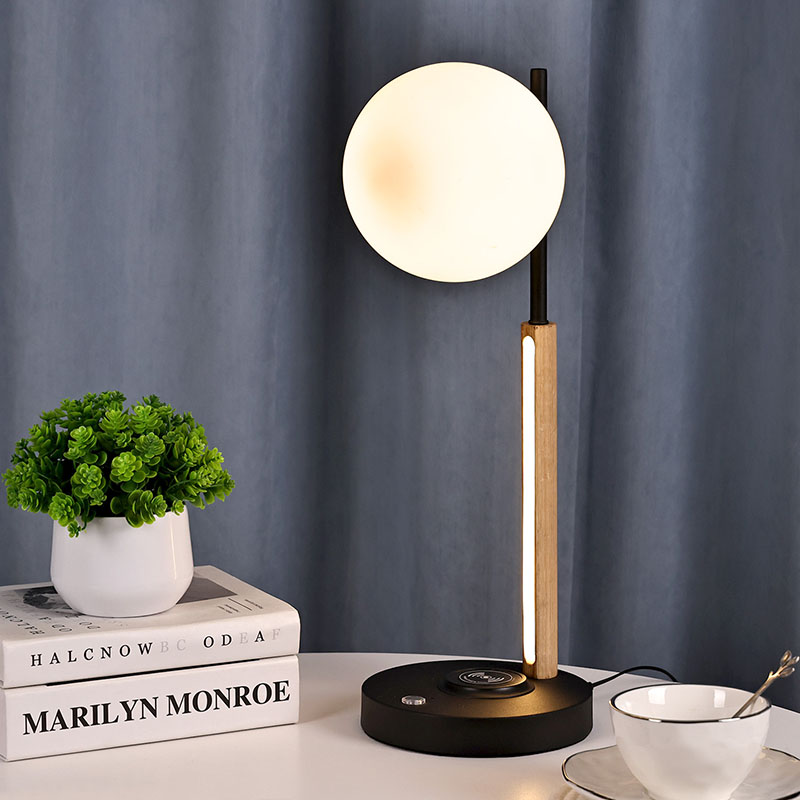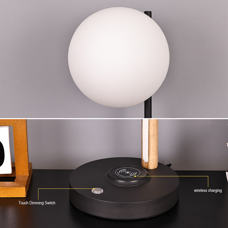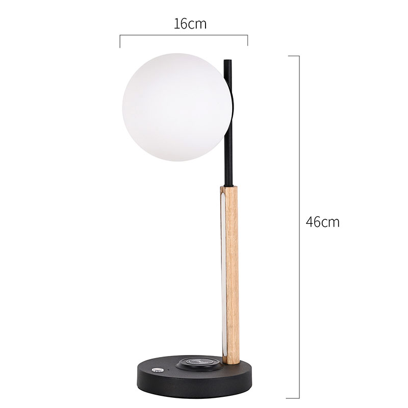 Во модерниот дизајн на домот, светилка која комбинира убавина и практичност несомнено може да додаде бесконечен шарм на вашиот животен простор. QI безжична LED светилка за работна маса со дрвена каросерија има сферична стаклена абажурка, куќиште од дрвена светилка со исечени LED светла и прилагодлив интензитет на светлина. Со својот едноставен, но стилски изглед, флексибилни и разновидни функции и висококвалитетни материјали, тој стана ваш идеален избор. Тоа не е само практична алатка за осветлување, туку и уметничко дело што го исполнува вашиот живот со бесконечни можности.