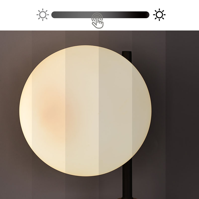 Најголемиот белег на оваа мала светилка за работна маса е нејзиниот уникатен дизајн на абажур во форма на сферично стакло. Абажурот е изработен од висококвалитетен стаклен материјал, со мазна и нежна површина и мек сјај. Дизајнот на сферичниот абажур не само што и дава на светилката чиста и благородна текстура, туку и овозможува светлината да се емитува порамномерно, создавајќи мека и топла атмосфера.