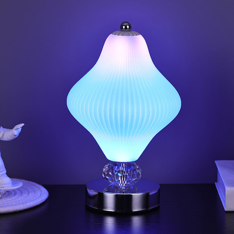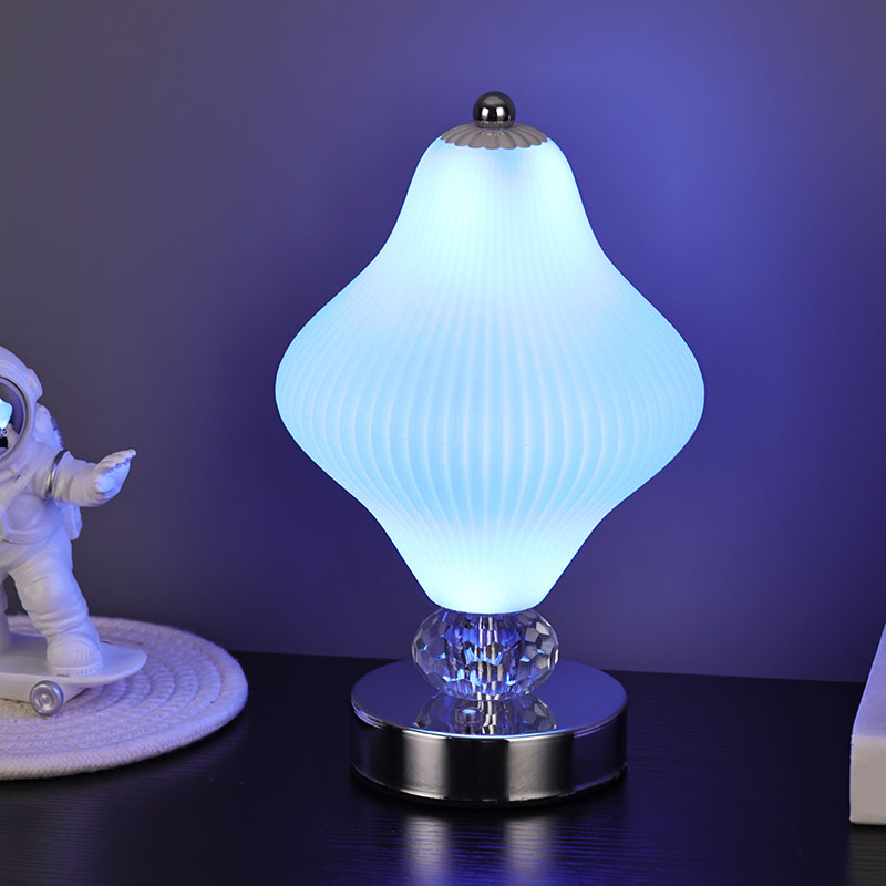 Покрај уникатниот дизајн на абажур, оваа мала светилка за на маса има и блескава RGB функционалност во боја. Преку напредната LED технологија, уредите за осветлување можат да емитуваат мека и униформа светлина и слободно да ја прилагодуваат бојата на светлината според различни сцени и потреби. Можете да ја изберете вашата омилена боја или да дозволите светилките автоматски да ги менуваат боите за да создадат шарена визуелна гозба.