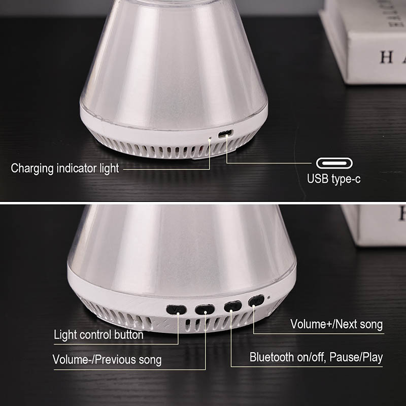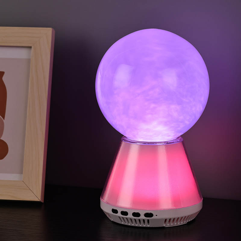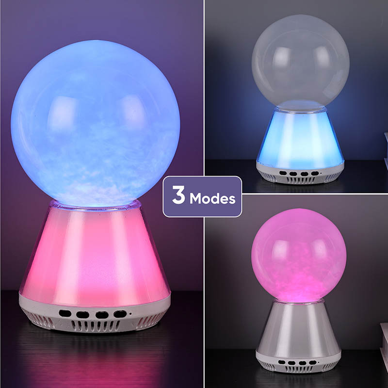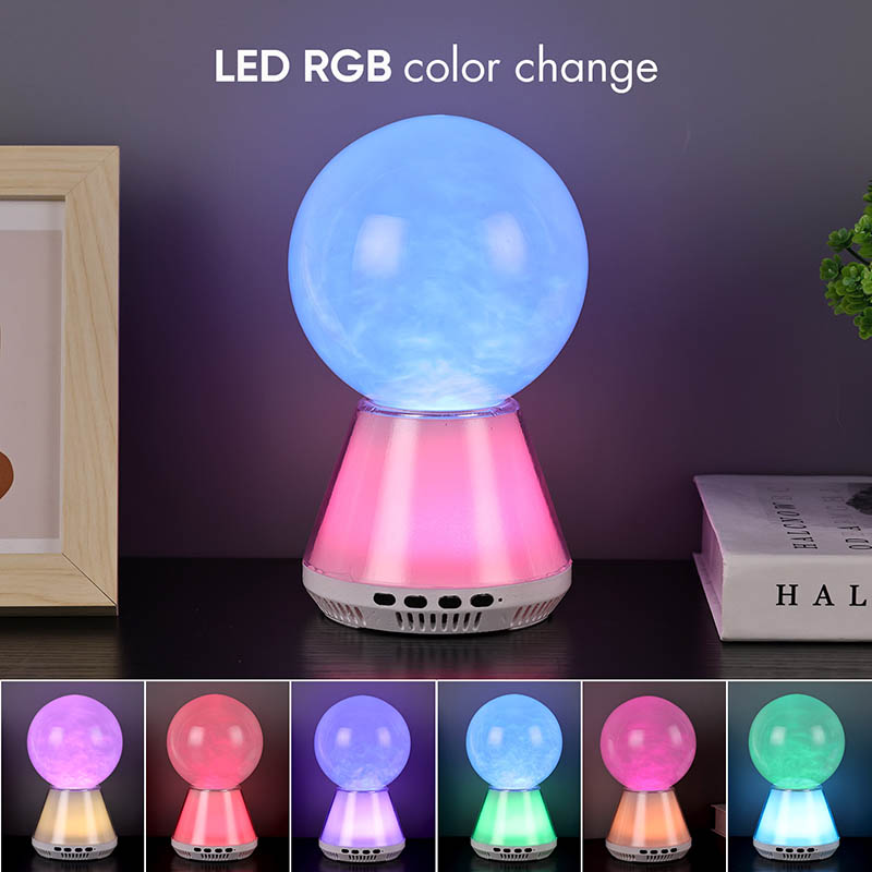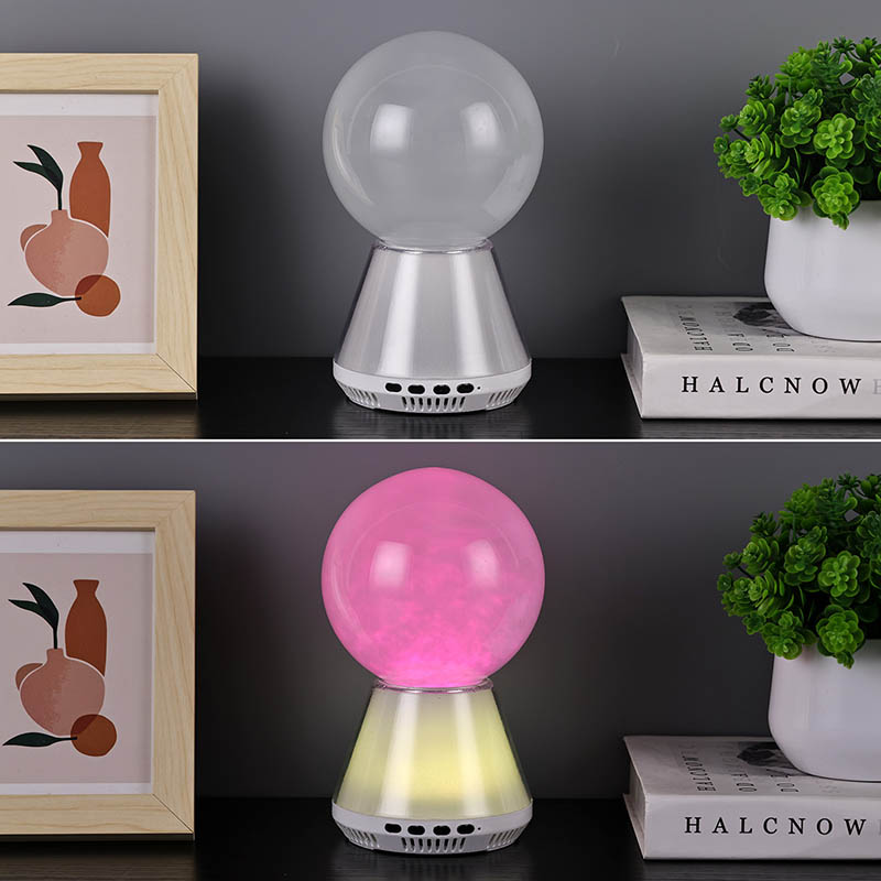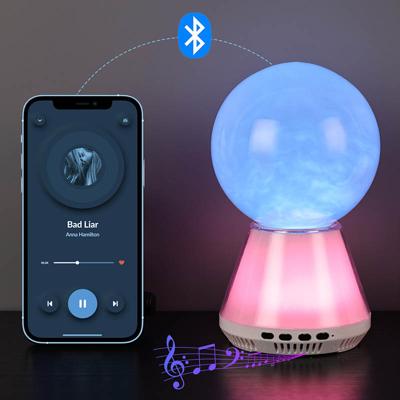 RGB LED светкава светилка со блутут контрола која го комбинира протокот на течност во стаклена топка во состојба како облак, синхронизирани промени на бојата помеѓу основата и течноста, и Bluetooth конекција за репродукција на музика, е дизајнирана да создаде свет од сон за вас. RGB LED светкава светилка со блутут контрола не е само практично ноќно светло, туку и магично уметничко дело.