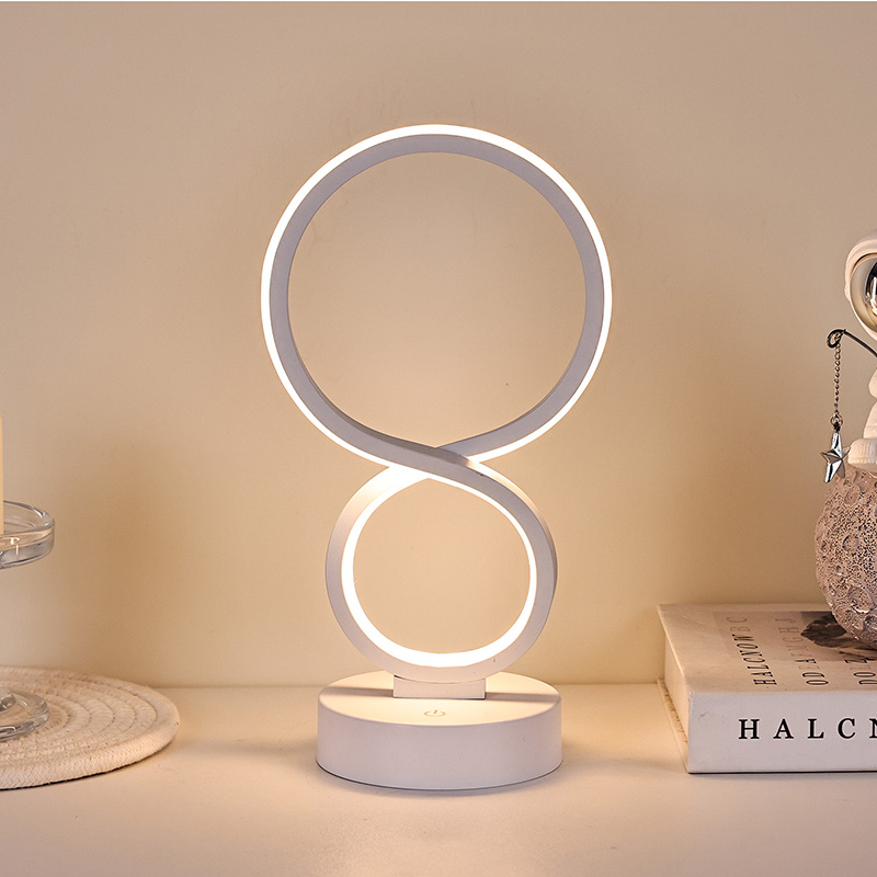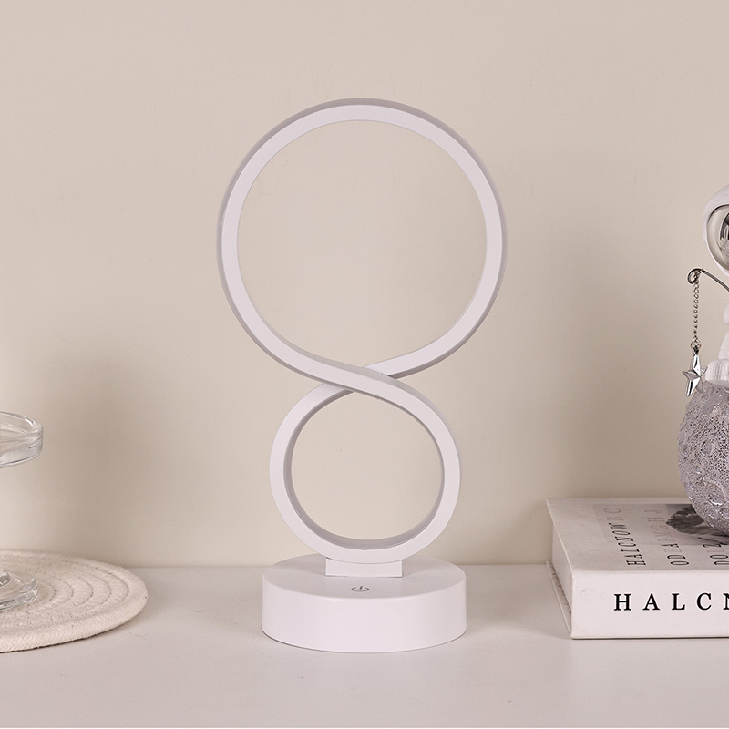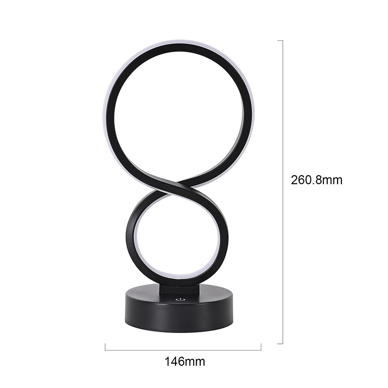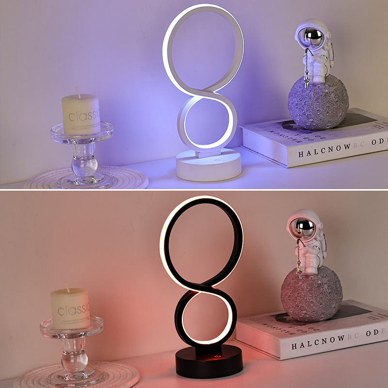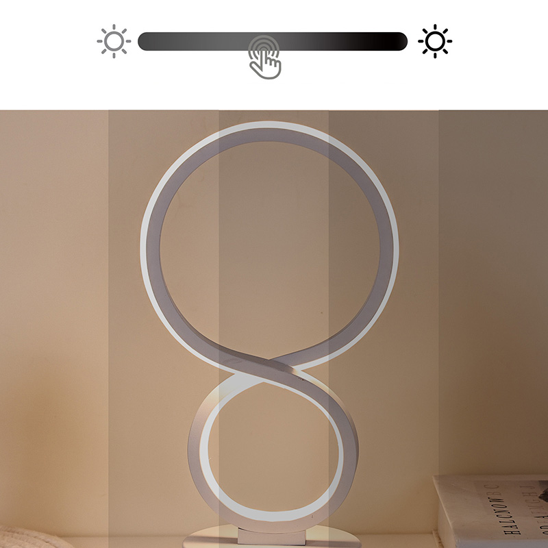 Инспирирани од симболот на бесконечноста, симболизирајќи ја убавината на вечноста и циркулацијата, мазните линии оцртуваат елегантна силуета во облик на 8. Комбинацијата на метал и висококвалитетна пластика создава нежна текстура со топли пипала. Без разлика дали е сместен во спалната соба, покрај креветот, аголот на работната маса или аголот на дневната соба, тој е впечатлив пејзаж кој додава модерна уметничка атмосфера во домот.