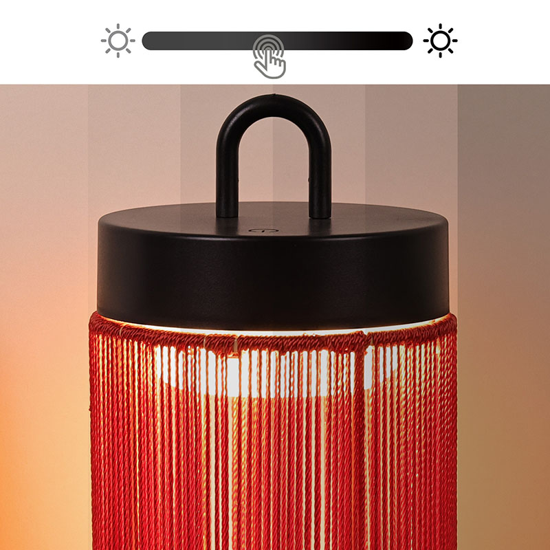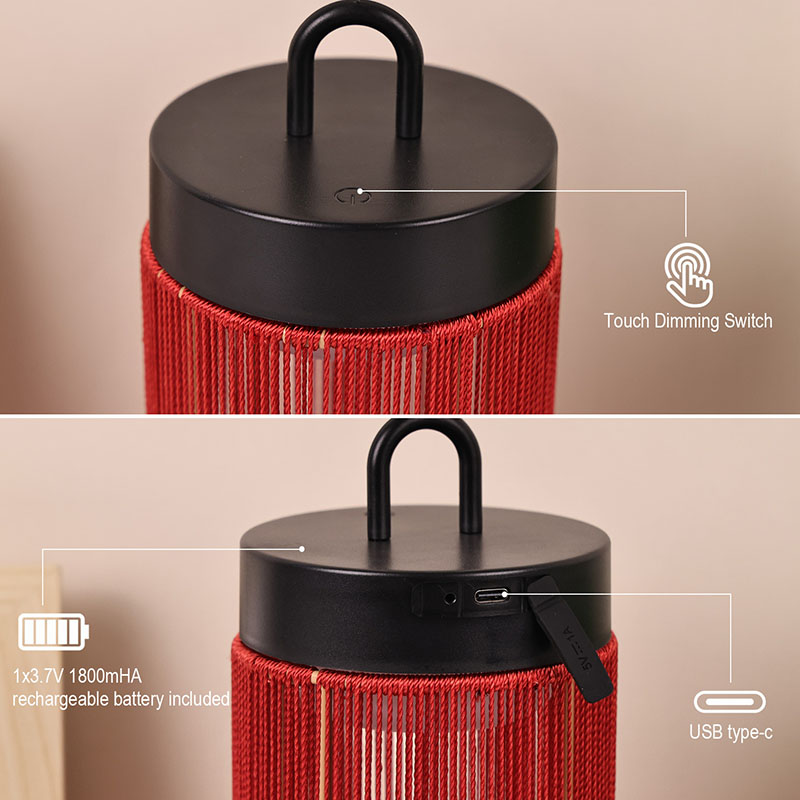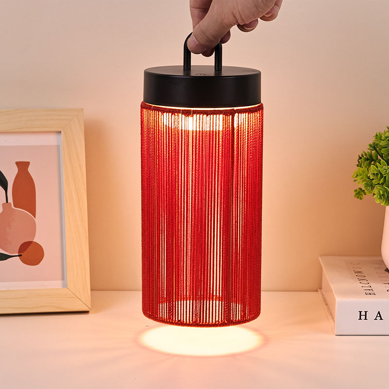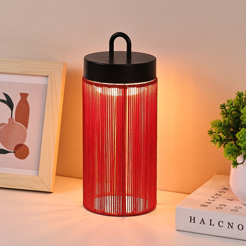 Целокупен дизајн: Во форма на цилиндар, со едноставни и мазни линии, Специјална LED светилка за работна маса со најлон има модерен минималистички стил. Специјална LED светилка за работна маса со најлонска форма ја прави постабилна кога е поставена и исто така погодна за рачно движење. Усогласување на бои: Главниот дел е светло црвена, што им дава на луѓето топло и живо визуелно искуство, што е лесно