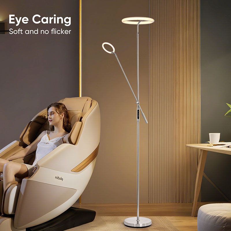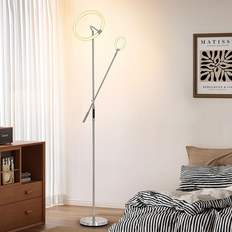 За да ги задоволите вашите потреби за осветлување во различни сценарија, столбот и основата на оваа подна светилка се опремени со 3 нивоа на функција за прилагодување на интензитетот на светлината. Преку едноставни операции, можете слободно да го прилагодите интензитетот на осветлувањето според различни потреби и сцени. Без разлика дали ви треба силна светлина за читање книги или сакате меко осветлување за да создадете романтична атмосфера, столбот и основата на оваа подна ламба лесно можат да ги задоволат вашите барања.