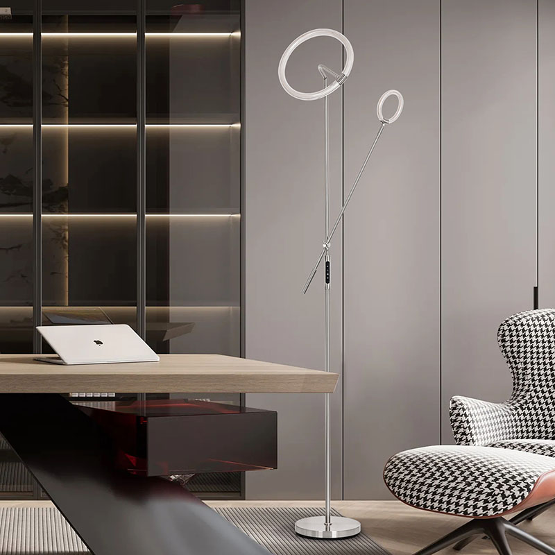Дизајнот на еколошкиот осветлување не само што ги обдарува светилките со уникатен визуелен ефект, туку и ефикасно ја дифузира светлината, правејќи ја светлината помека и подеднаква. Столбот и основата на оваа подна светилка се фино полирани и обработени, со мазна и деликатна површина и удобно чувство за раце,