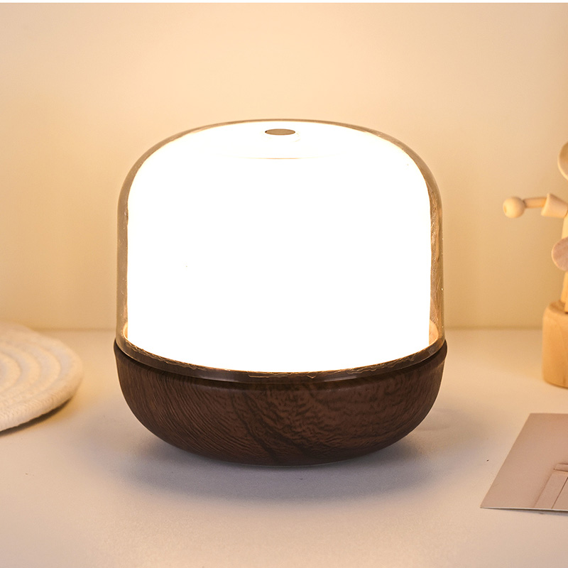 Природна текстура, топло на допир Крупата на светилката се одликува со високопрецизен материјал за имитација на зрно дрво со нежни и реалистични текстури, претставувајќи го нежното природно цврсто дрво. Во комбинација со мазен и заоблен дизајн, наликува на прецизно изработено уметничко дело. Без разлика дали е поставен на ноќна маса, биро или маса за облекување, хармонично се вклопува со домашната средина, издигнувајќи го целокупниот амбиент. Дрвеното зрно не само што и дава природен и пристапен шарм на светилката, туку и го исполнува секој допир со топлина, како да е потопен во мирната ноќ на длабока шума.